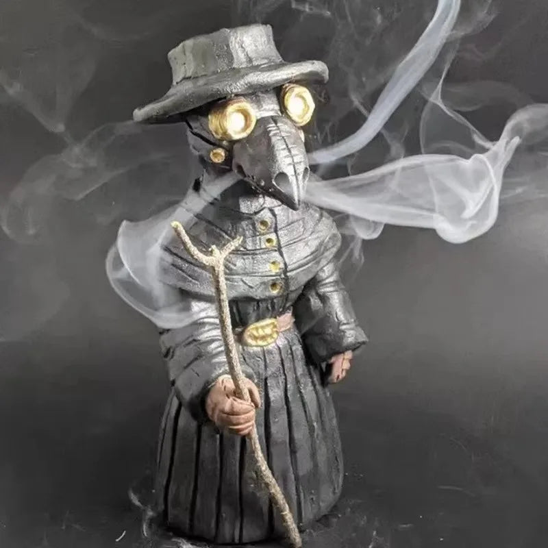 Plague Doctor Incense Burner Gothic Aromatherapy Statue Mini Crow Figurine Halloween Decor Stress Relief Home Altar Decor Gift
